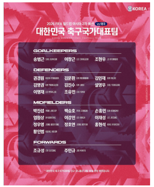 2026 북중미 월드컵 아시아 예선 경기 전을 앞두고 있습니다.